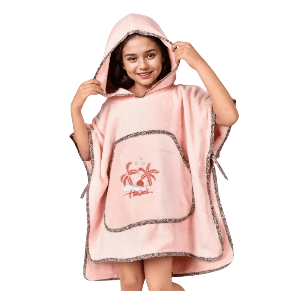 بونشو أطفال ناعم وخفيف بطراز هاواي. مريح وامتصاصي وسهل الارتداء. المقاسات 2–8 سنوات. متوفر بالألوان: كشمير داكن، وردي فاتح، خمري، وردي داكن، رمادي، أزرق، أبيض، وردي، كافيه، تركواز.