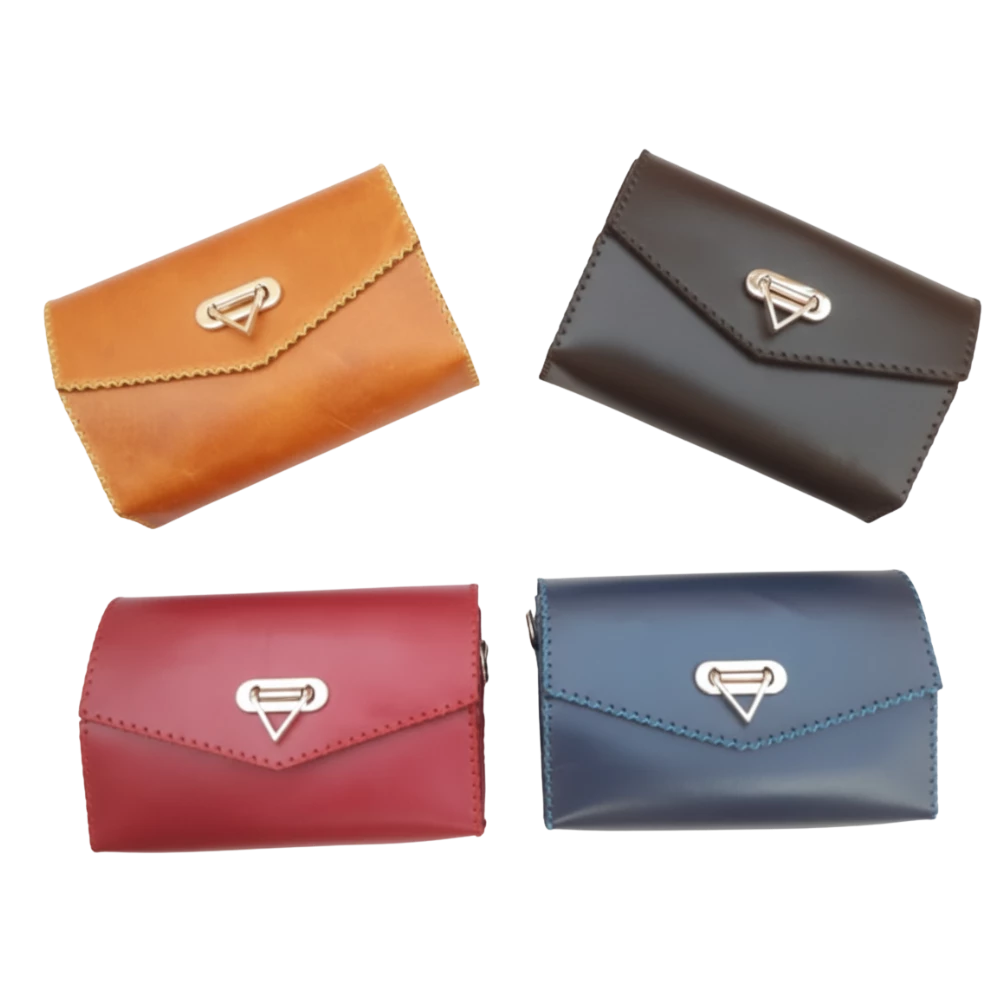 حقيبة كلاتش من الجلد الطبيعي بخياطة يدوية وإغلاق محكم، بتصميم مدمج بحجم 12×20 سم.