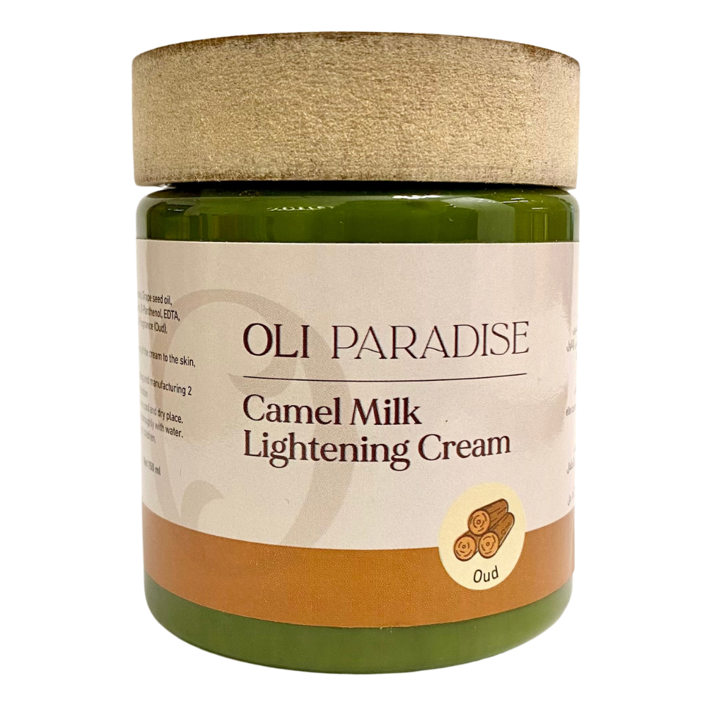 كريم تفتيح فاخر غني بحليب الإبل مع رائحة العود الفاخرة، مصمم لتفتيح البشرة وتنعيمها. مثالي للبشرة الجافة والباهتة.