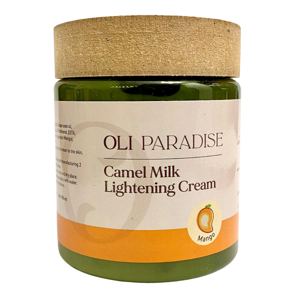 كريم تفتيح غني بحليب الإبل ومستخلص المانجو يمنح البشرة تغذية عميقة ويعمل على توحيد لون البشرة.