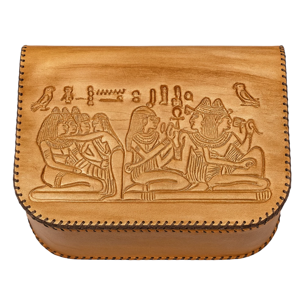 حقيبة نسائية من باست جاليري مصنوعة يدويًا من الجلد الجملي الطبيعي، تحمل في طياتها لمسات من الفن الفرعوني العريق بنقوش محفورة بدقة تجسد مشاهد من الحياة المصرية القديمة. تمت خياطتها يدويًا بعناية فائقة لتجمع بين الأصالة والفخامة، مما يجعلها قطعة فنية عملية تعبّر عن ذوق المرأة التي تقدر التراث المصري والحرفية الراقية.