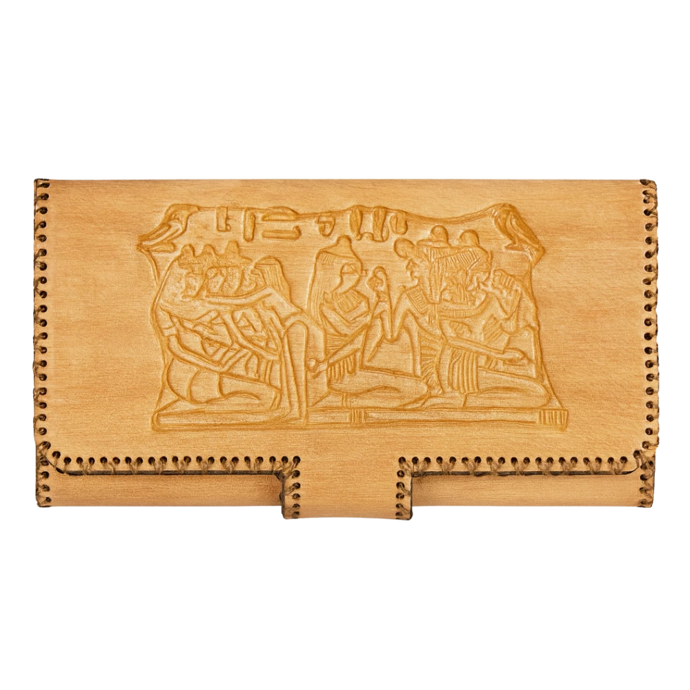 باست جاليري محفظة نسائية جلد جملي بنقوش فرعونية محفورة يدويًا