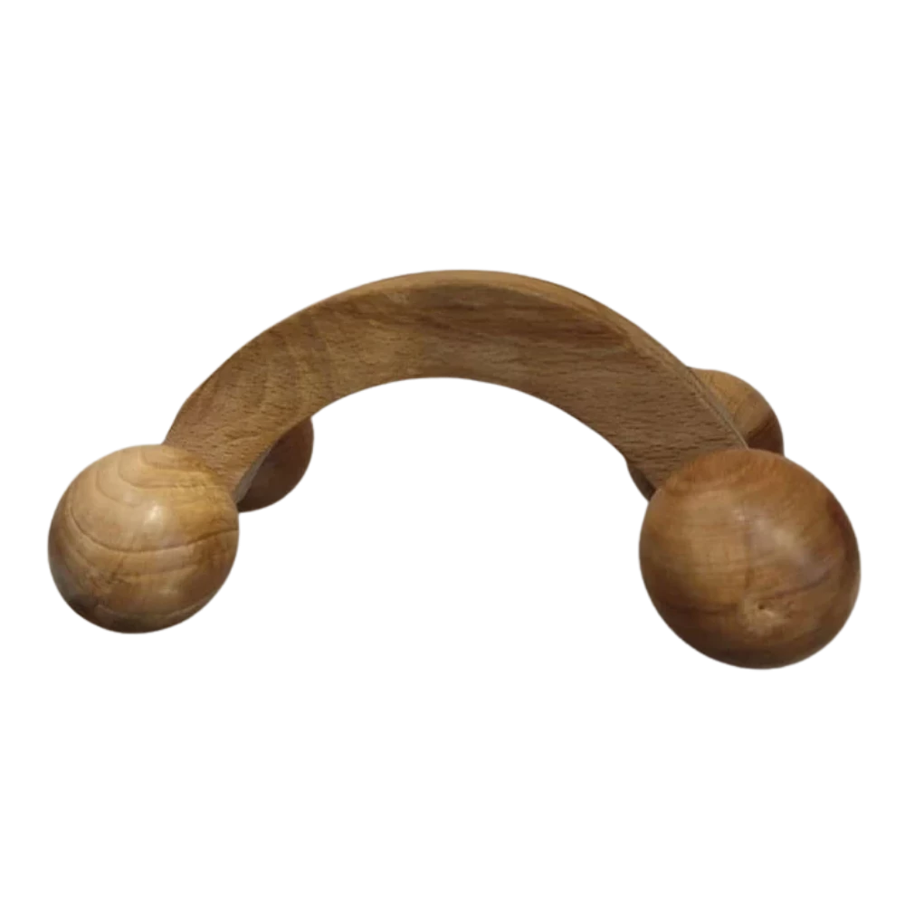مدلك خشبي على شكل جمل يحتوي على 4 كرات لتدليك مناطق مختلفة من الجسم.