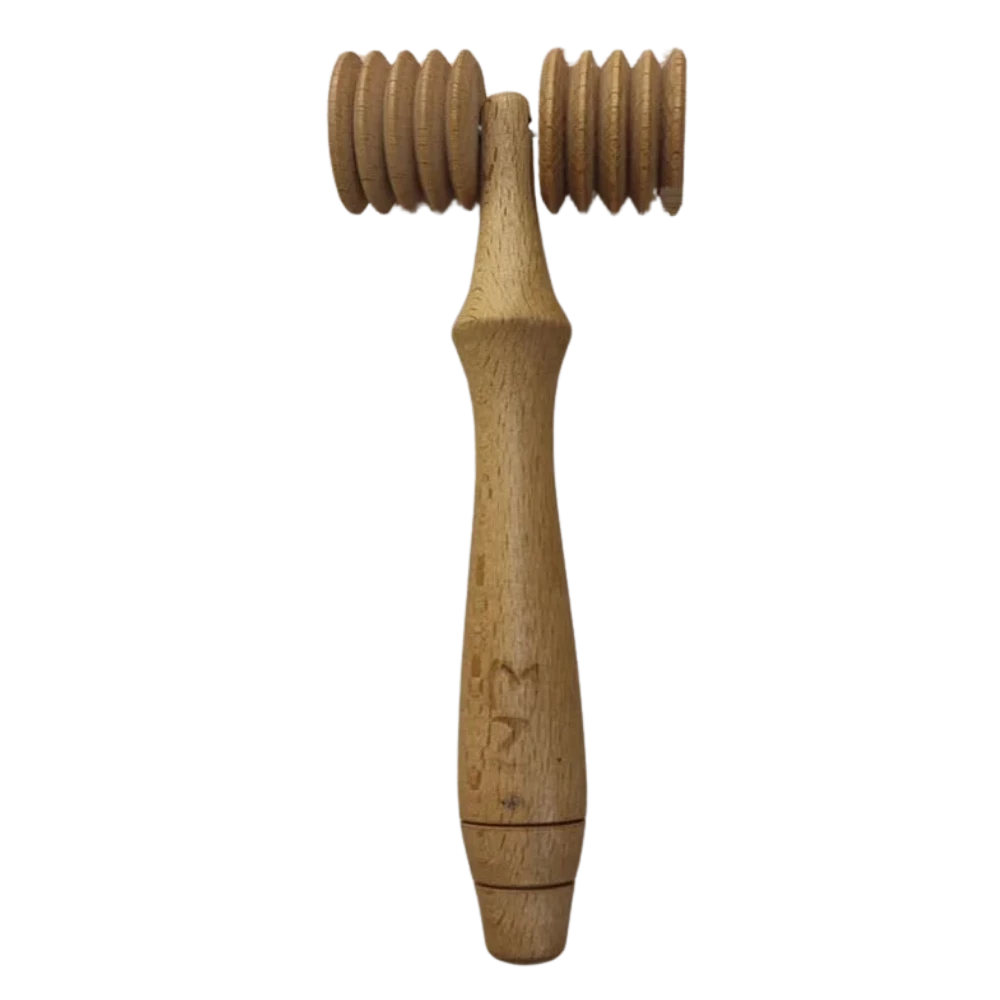 مطرقة بكرة خشبية مزدوجة لتدليك عميق وفعال للعضلات.