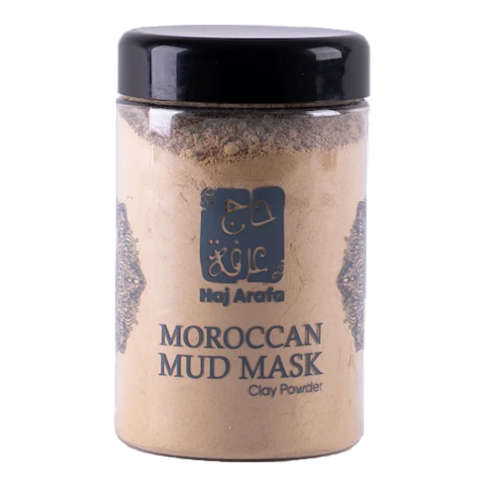 طمي مغربي طبيعي يستخدم لتنظيف البشرة وتقشيرها، يساعد على إزالة الشوائب وتفتيح البشرة.