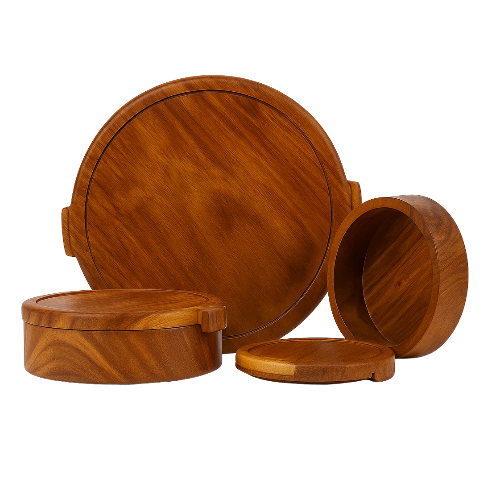 حجازه طقم علب طعام خشبية مصنوعة يدويًا – بتشطيب طبيعي من خشب الجوز