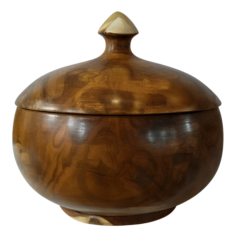 حجازه وعاء خشبي بغطاء مصنوع يدويًا – بتشطيب طبيعي من خشب الجوز