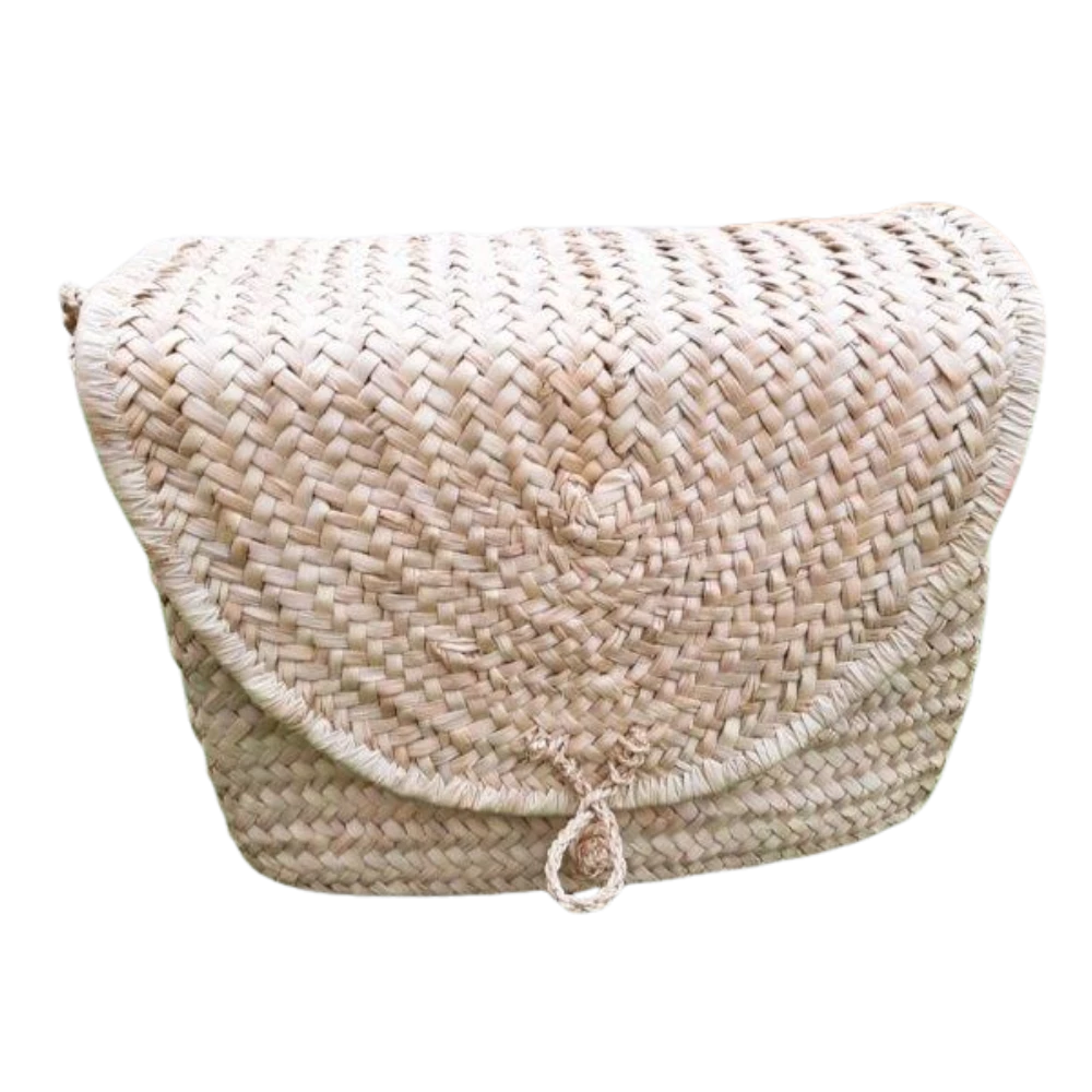 حقيبة كتف أنيقة مصنوعة يدويًا من سعف النخيل الطبيعي، بتصميم منحني ناعم وسطح منسوج بأسلوب تقليدي. خفيفة الوزن وصديقة للبيئة، تضيف لمسة طبيعية وأنيقة، مثالية للاستخدام اليومي أو للرحلات الصيفية.