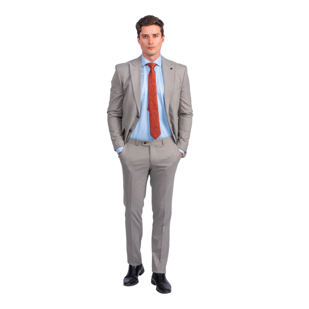 بدلة مربعات دقيقة من روبان بقصة عادية أنيقة وعملية تناسب جميع المناسبات. متوفرة بالمقاسات 48 - 50 - 52 - 54 - 56 - 58 وباللون البيج.