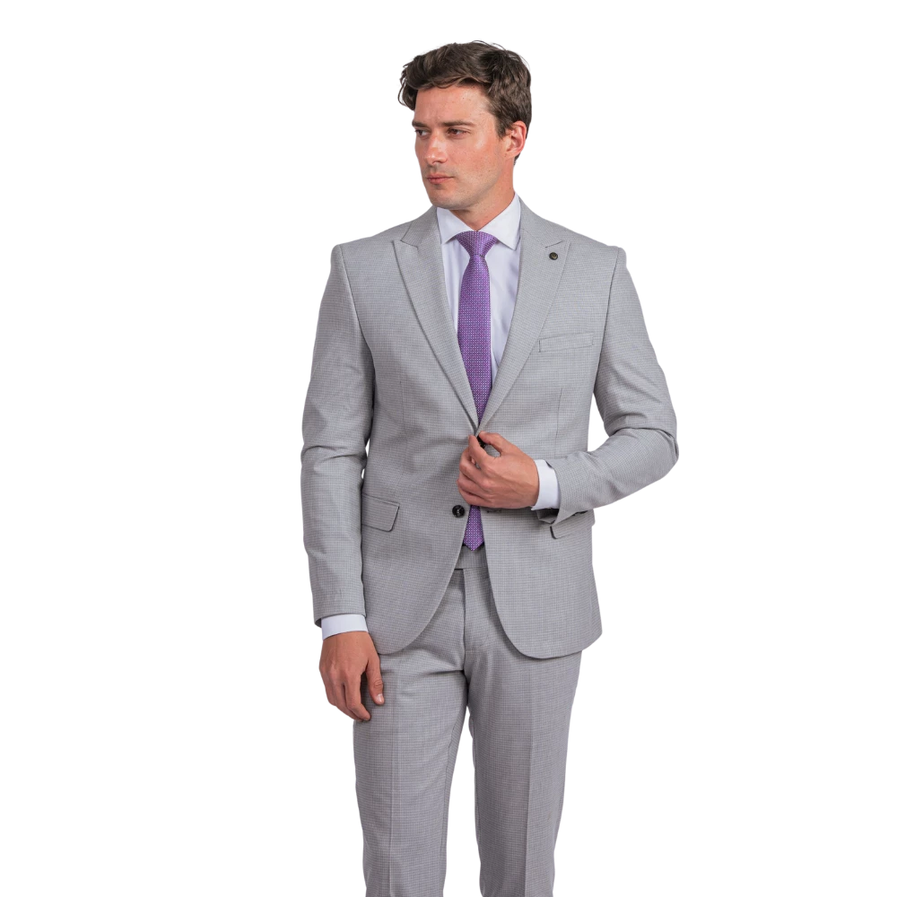 بدلة مربعات دقيقة رمادية من روبان بقصة عادية مصممة بخامة فاخرة لضمان الأناقة والراحة. متوفرة بالمقاسات 48 - 50 - 52 - 54 - 56 - 58 وباللون الرمادي.