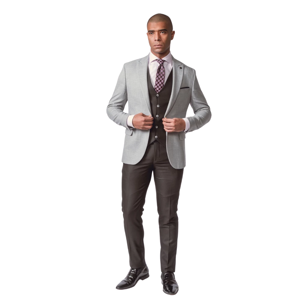 بدلة هيرنغبون ثلاثية القطع من روبان بقصة ضيقة أنيقة باللون الرمادي، مصنوعة من خامات عالية الجودة لتمنحك الراحة والمتانة. متوفرة بالمقاسات 48 - 50 - 52 - 54 - 56 - 58.