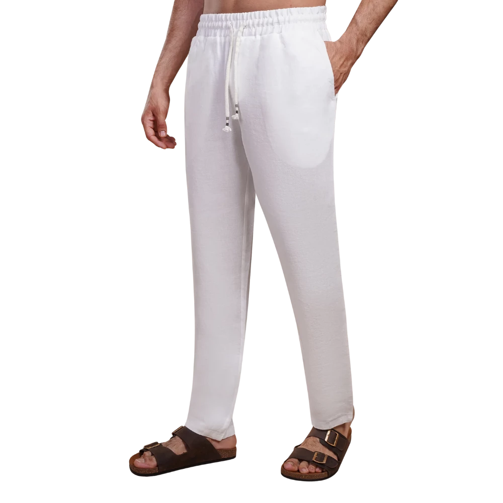 بنطال كتان نقي مغسول من روبان يتميز بالمتانة والملمس الناعم ليمنحك مظهراً أنيقاً وكاجوال. متوفر بالمقاسات M - L - XL - XXL - 3XL وباللون الأبيض.