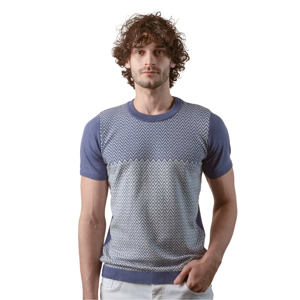 تي شيرت قطن محاك بياقة مستديرة من روبان بتصميم متعرج عصري وخامة مريحة تدوم طويلاً. متوفر بالمقاسات M - L - XL - XXL - 3XL وبألوان البيج - البنفسجي.
