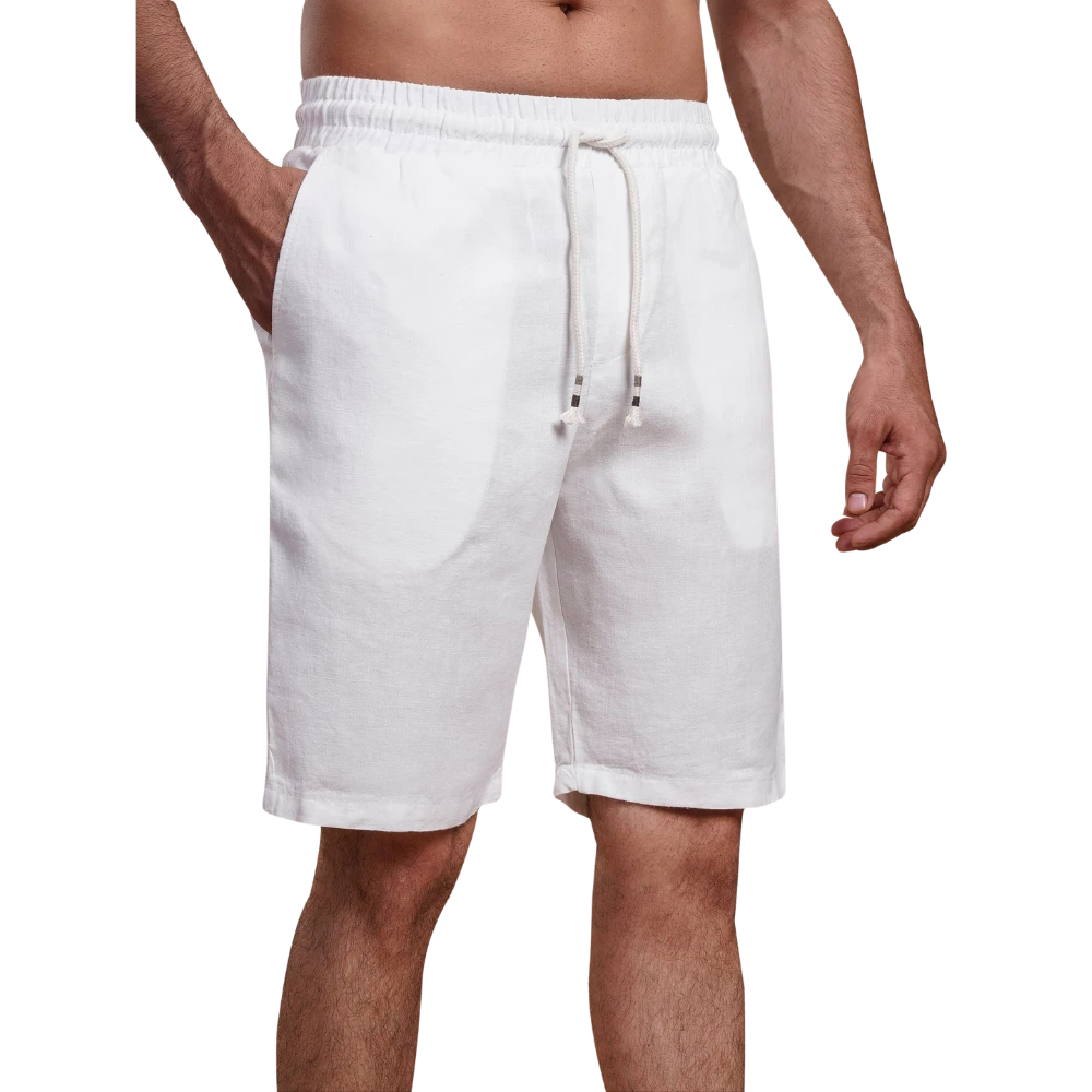 شورت كتان نقي مغسول من روبان بخامة خفيفة وملمس ناعم لراحة فائقة طوال اليوم. متوفر بالمقاسات M - L - XL - XXL - 3XL وباللون الأبيض.