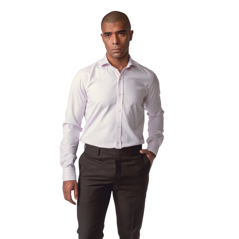 قميص أوكسفورد مخطط مغسول من روبان بقصة ضيقة يناسب الإطلالات الكاجوال الأنيقة. متوفر بالمقاسات S - M - L - XL - XXL - 3XL وبألوان أزرق سماوي - وردي - بيج.