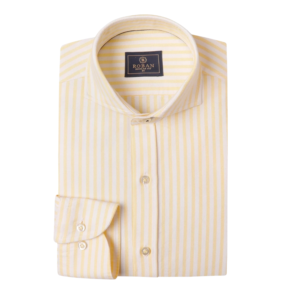 قميص أوكسفورد مغسول مخطط بقصة عادية من روبان بتصميم كلاسيكي أنيق. متوفر بالمقاسات M - L - XL - XXL - 3XL - 4XL وبألوان الأخضر - البرتقالي - الأصفر الفاتح.