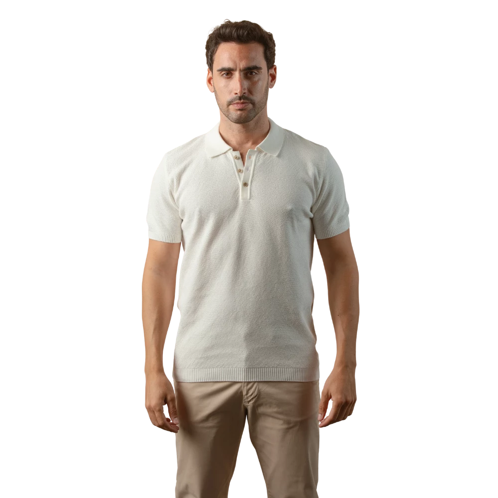 قميص بولو قطني محبوك مثقب من روبان متوفر بألوان الأبيض - البيج - الأزرق السماوي - النعناعي. يأتي بالمقاسات M - L - XL - XXL - 3XL. مثالي للتوزيع في أسواق الأزياء B2B.