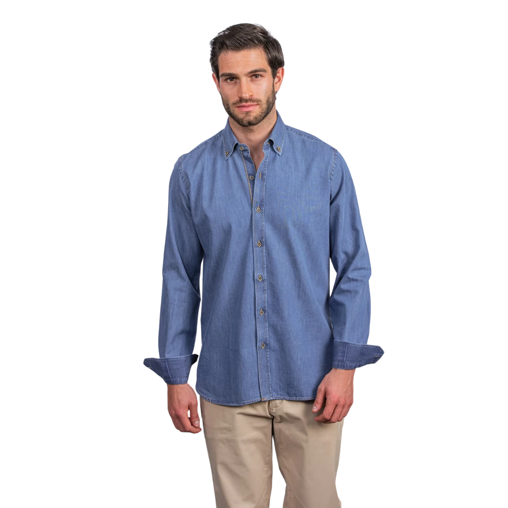 قميص دنيم مغسول من روبان بلون أزرق غامق وقصة عادية لراحة وأسلوب يدوم طويلاً. متوفر بالمقاسات M - L - XL - XXL - 3XL - 4XL.