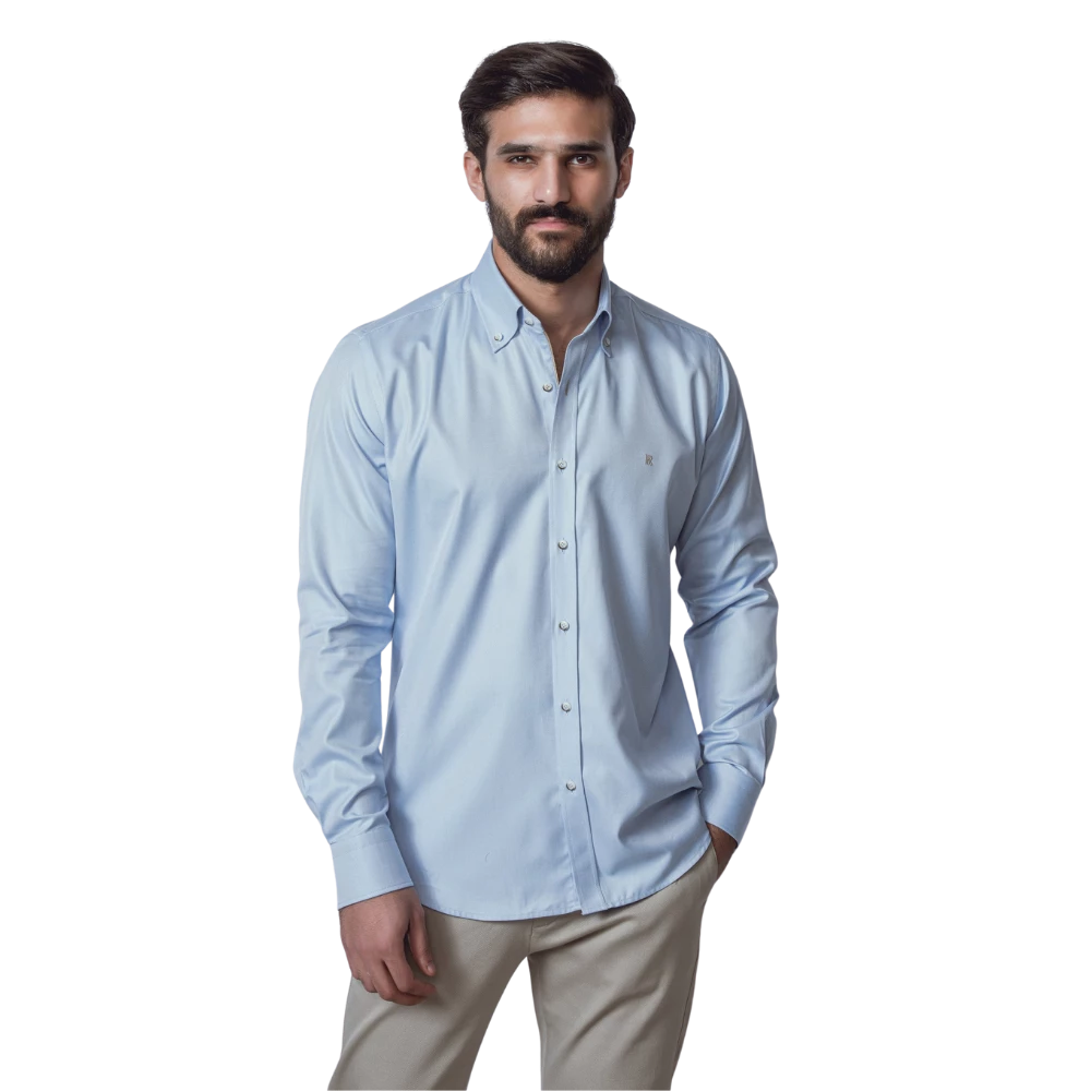 قميص قطني مايكرو مخطط من روبان بقصة ضيقة وأسلوب عصري أنيق. متوفر بالمقاسات S - M - L - XL - XXL وبألوان أزرق سماوي - أبيض.
