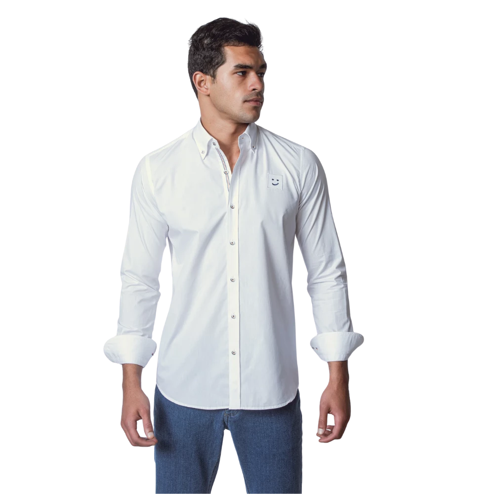 قميص قطني ناعم سادة من روبان مع تطريز أنيق لإطلالة كلاسيكية. متوفر بالمقاسات S - M - L - XL - XXL وباللون الأبيض.