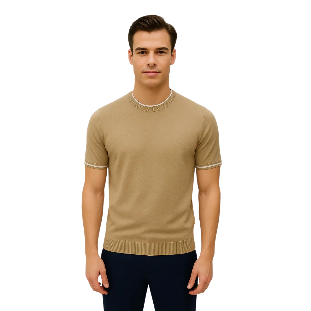 قميص قطن محاك بياقة مستديرة من روبان بتصميم عملي وخامة مريحة تدوم طويلاً لإطلالة يومية عصرية. متوفر بالمقاسات M - L - XL - XXL وبألوان البيج - الكحلي - النعناعي - الأسود - الرمادي.