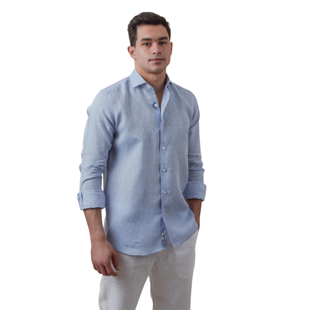 قميص كتان مغسول سادة من روبان بخامة خفيفة ومريحة للاستخدام اليومي. متوفر بالمقاسات M - L - XL - XXL - 3XL وبألوان الأزرق السماوي - الأبيض.