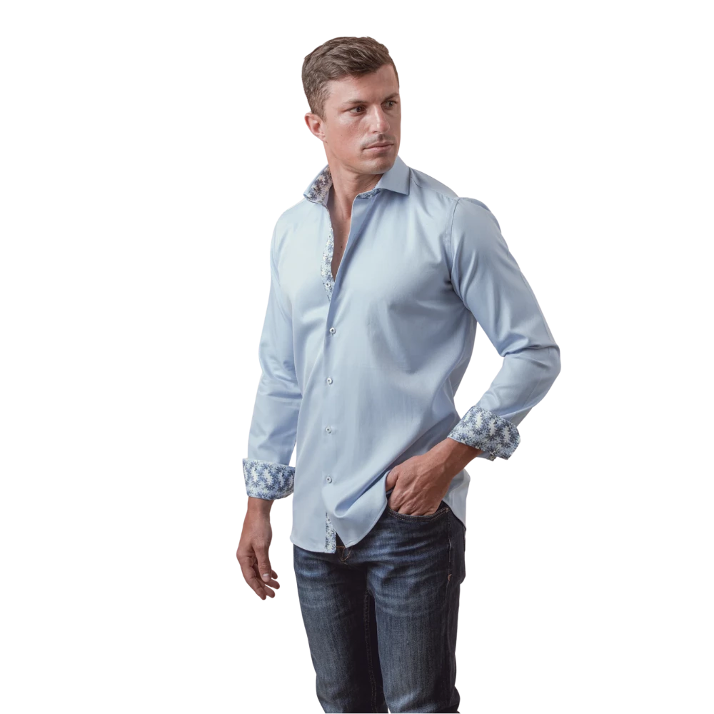 قميص مضلع دقيق من روبان بقصة ضيقة، بخامة عالية الجودة تسمح بالتهوية وتضمن الراحة. متوفر بالمقاسات S - M - L - XL - XXL - 3XL وبألوان الأزرق السماوي - الأبيض.