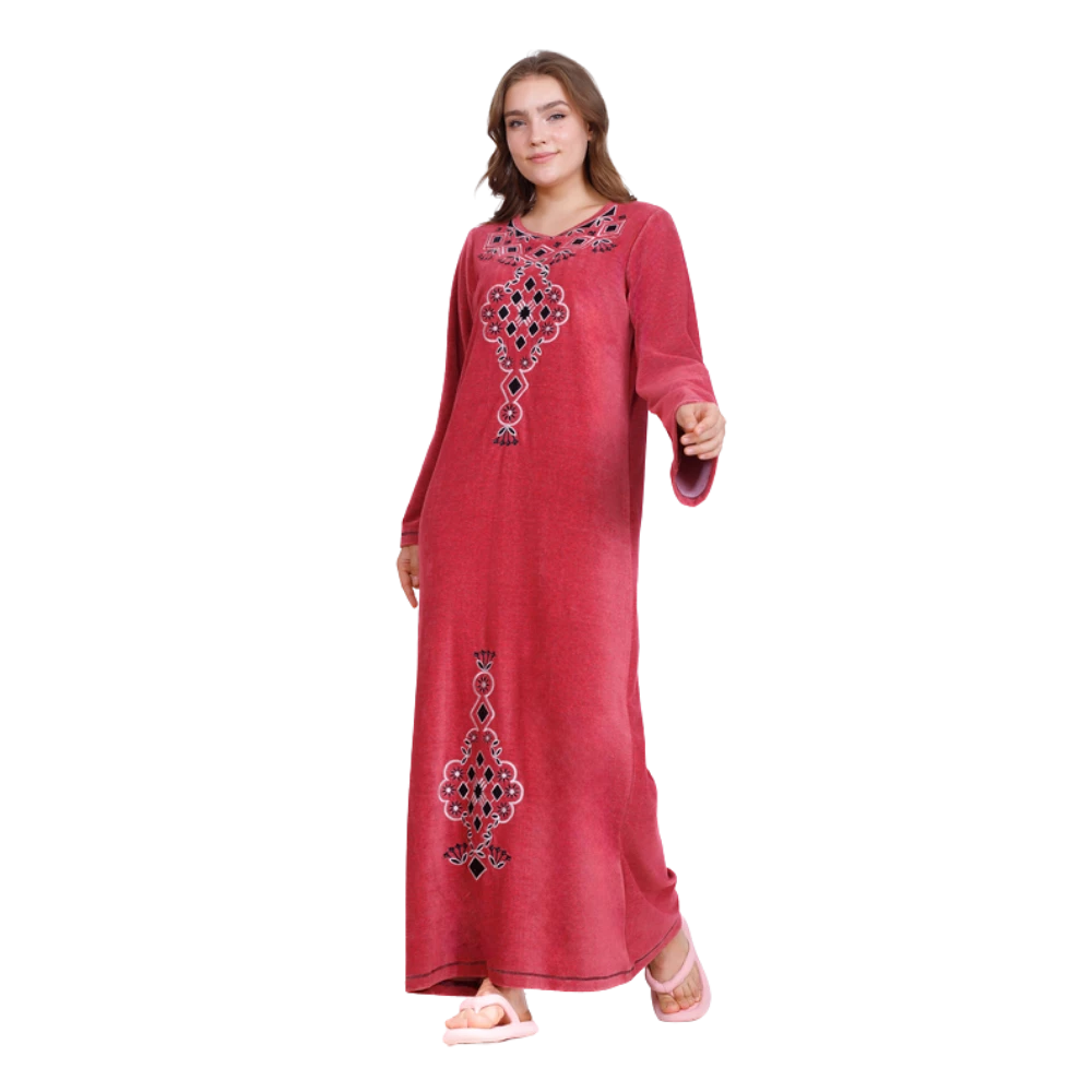 زكوتكس عباية شتوية مخملية مطرّزة – أحمر – مقاسات متعددة