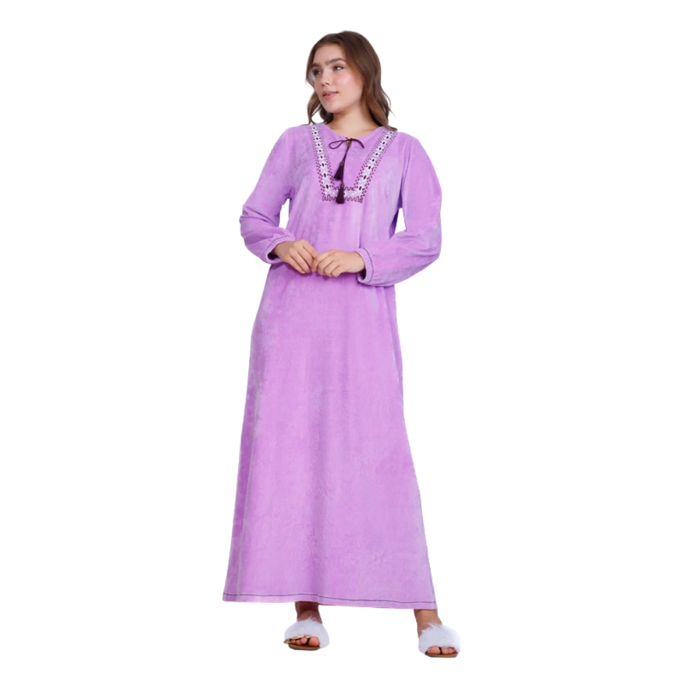 زكوتكس عباية شتوية مخملية مطرّزة – بنفسجي فاتح – مقاسات متعددة