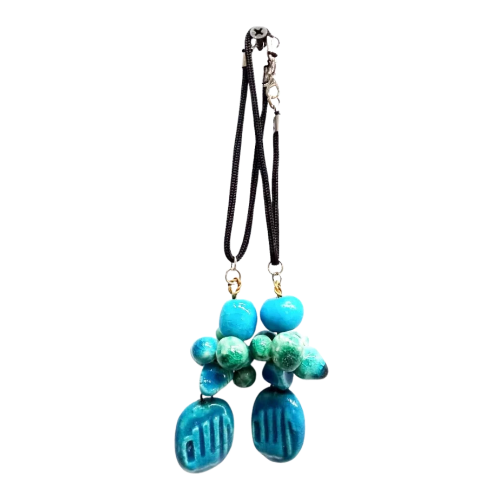 معلقة حائط سيراميك مزينة بخرز تركواز من السيراميك ومنقوشة بلفظ الجلالة "الله". قطعة فنية يدوية تجمع بين التفاصيل الجمالية والروحانية، مثالية للإهداء أو لتزيين المنزل.