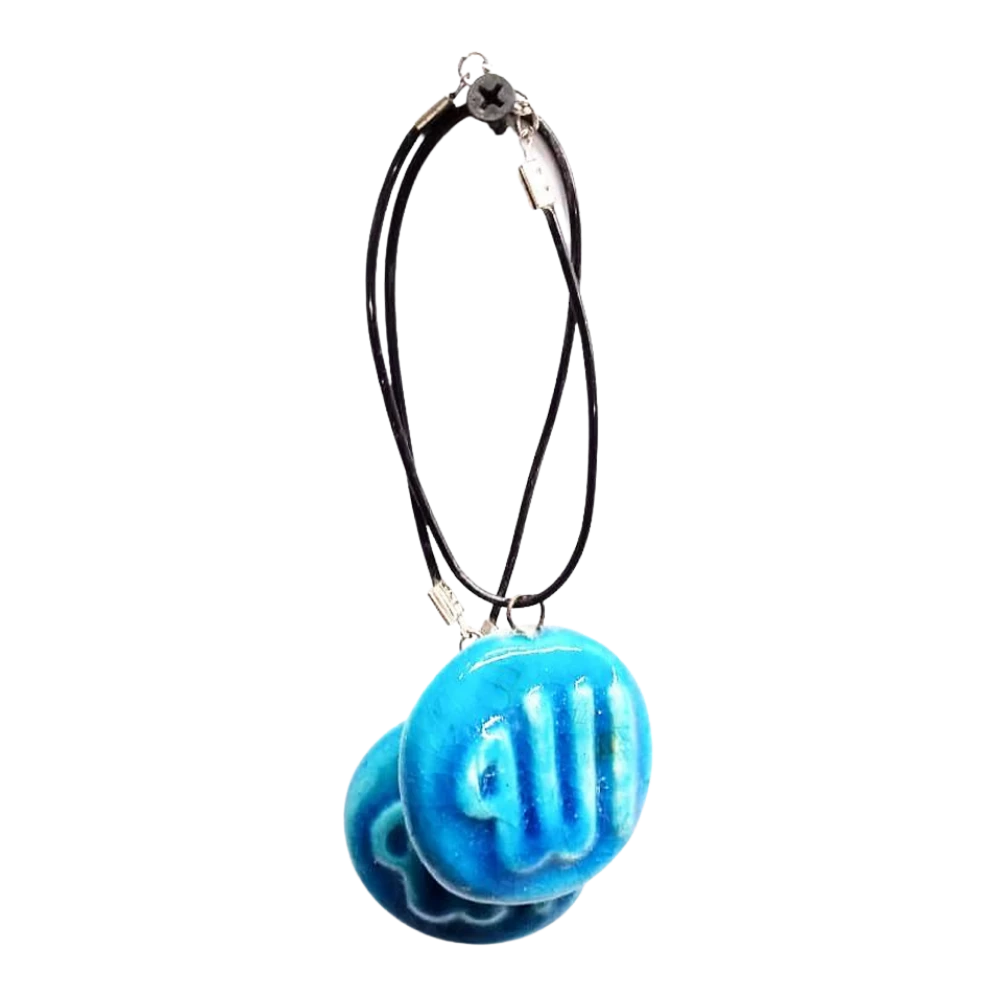 معلقة حائط سيراميك صغيرة يدوية الصنع منقوشة بلفظ الجلالة "الله". تتميز بتصميم أنيق وبسيط يمكن تعليقه في أماكن متعددة ليضفي لمسة روحية مميزة.