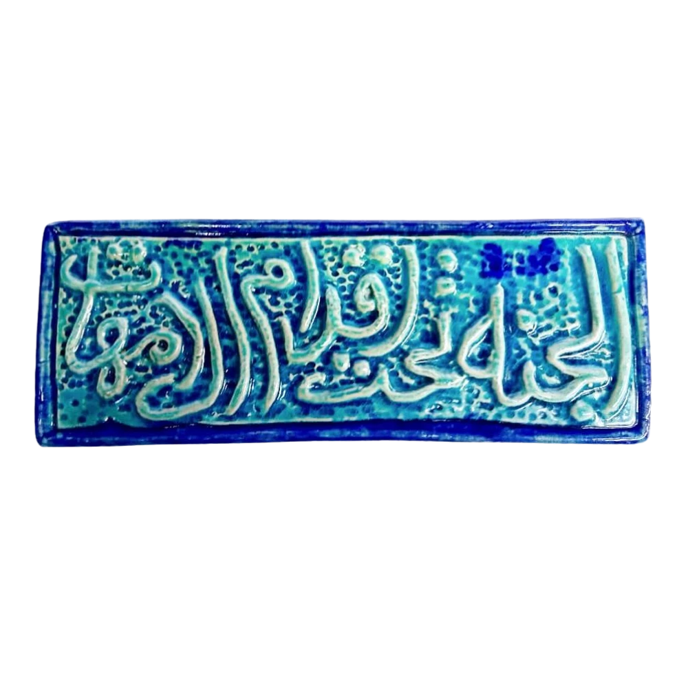 لوحة حائط مستطيلة من السيراميك مزخرفة بالعبارة المؤثرة "الجنة تحت أقدام الأمهات". قطعة فنية تحمل معاني المحبة والبر والتقدير للأمهات مع لمسة زخرفية أنيقة.