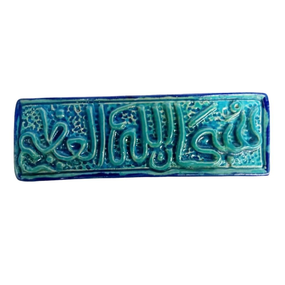 معلقة فنية سيراميكية يدوية مستطيلة الشكل منقوشة بالعبارة الروحانية “سبحان الله العظيم”. تتميز بألوان التركواز والأزرق الفاخر، لتضفي لمسة إيمانية وجمالية راقية على جدران منزلك.