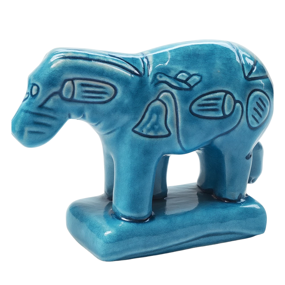 وحدة ديكورية مصنوعة يدوياً من السيراميك على شكل بقرة بلمسة تركوازية أنيقة. تفاصيلها الفنية تجعلها قطعة مميزة تضيف لمسة جمالية لأي مساحة. الأبعاد: 18×10 سم.