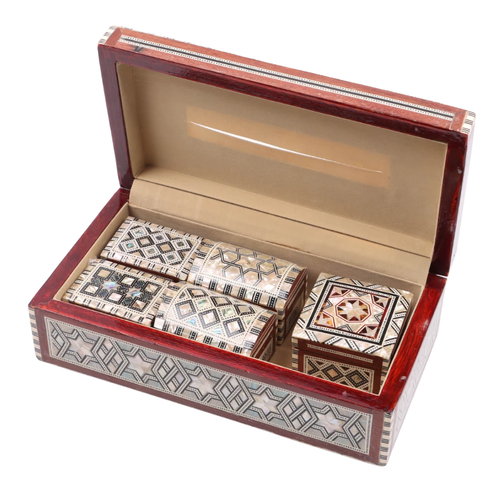 طقم صناديق خشبية مطعمة بالصدف ومزخرفة يدويًا