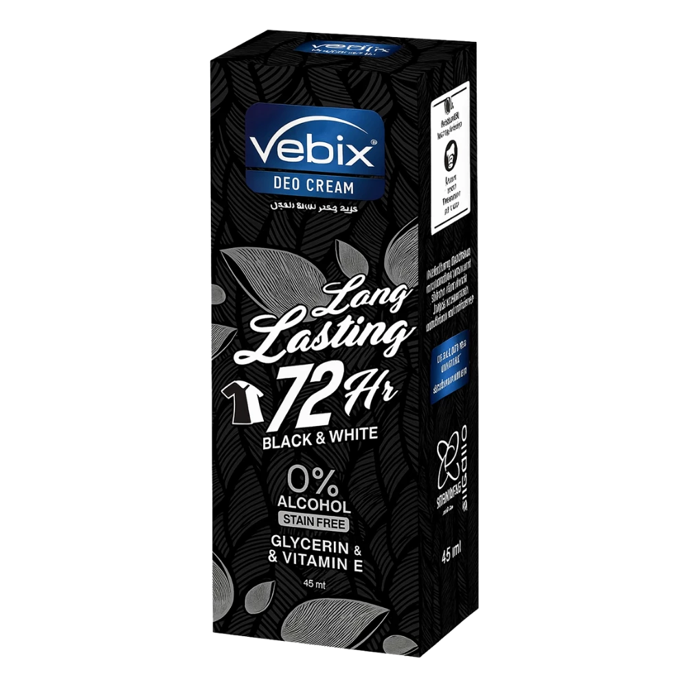 فيبكس ديو كريم هو الحل الأمثل للقضاء على العرق والرائحة الكريهة. يوفر هذا الكريم حماية فعالة، مما يجعلك واثقة وخالية من الروائح لمدة تصل إلى 72 ساعة. على عكس مزيلات العرق التقليدية، فيبكس ديو كريم خالٍ من الكحول، مما يضمن مزيل عرق آمن وصحي. لا يترك فيبكس ديو كريم بقعاً، تركيبته غنية بالجليسرين وفيتامين E التي تغذي بشرتك وترطبها، لتشعرك بالانتعاش والنشاط.