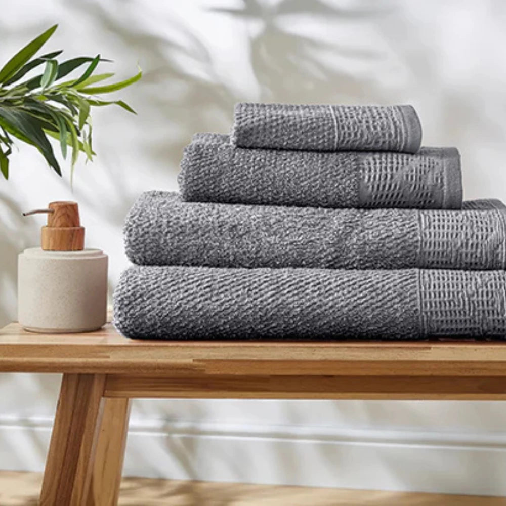منشفة الوافل هي منشفة فاخرة فائقة النعومة، سريعة الجفاف وعالية الامتصاص، مصنوعة من 100% قطن مصري، مما يوفر شعورًا فاخرًا وملمسًا لطيفًا على البشرة الحساسة، مثالية للاستخدام اليومي ووقت الاستحمام. تتميز بنمط الوافل الفريد الذي يعزز تدفق الهواء لتجفيف أسرع وتخزين مدمج. تتوفر منشفة الوافل بأحجام 33x33 سم، 50x100 سم، 70x140 سم، و 90x150 سم، مع ألوان تشمل P48 (نمط رمادي)، تيل، بنفسجي فاتح، أخضر زيتي، بيج، وأبيض.