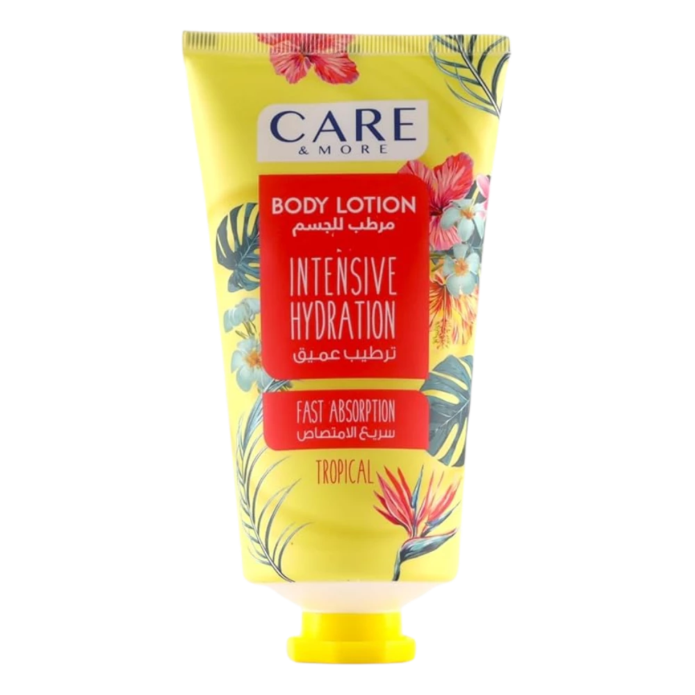 كير اند مور لوشن الجسم تركيبة سريعة الامتصاص غنية بالجليسرين و فيتامين هـ الذي يعمل على ترطيب البشرة الجافة و العادية و يمنحها ملمس ناعم و رائحة عطرة علي مدار اليوم. متوفر بـ (انتعاش الروائح الأستوائية، فراولة، جوز هند، التوت )
