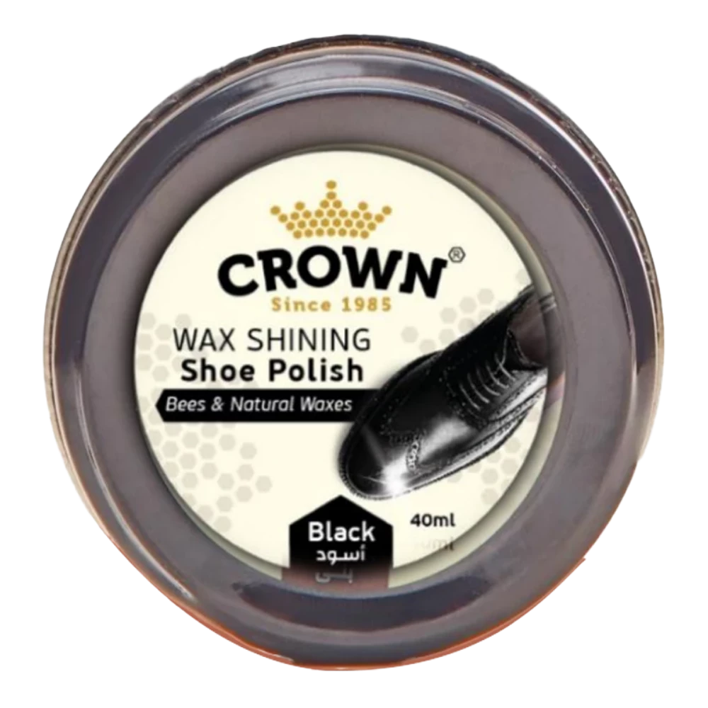 ورنيش شمعي كراون بإضافة تركيبة خاصة بشمع النحل ومجموعة الشموع الطبيعية ينظف ويعطي لمعان براق على جميع أنواع الأحذية الجلدية.
