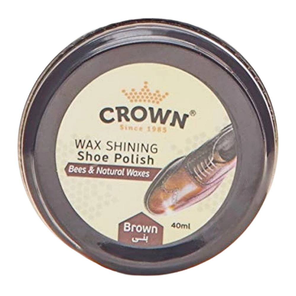 ورنيش شمعي كراون بإضافة تركيبة خاصة بشمع النحل ومجموعة الشموع الطبيعية ينظف ويعطي لمعان براق على جميع أنواع الأحذية الجلدية.