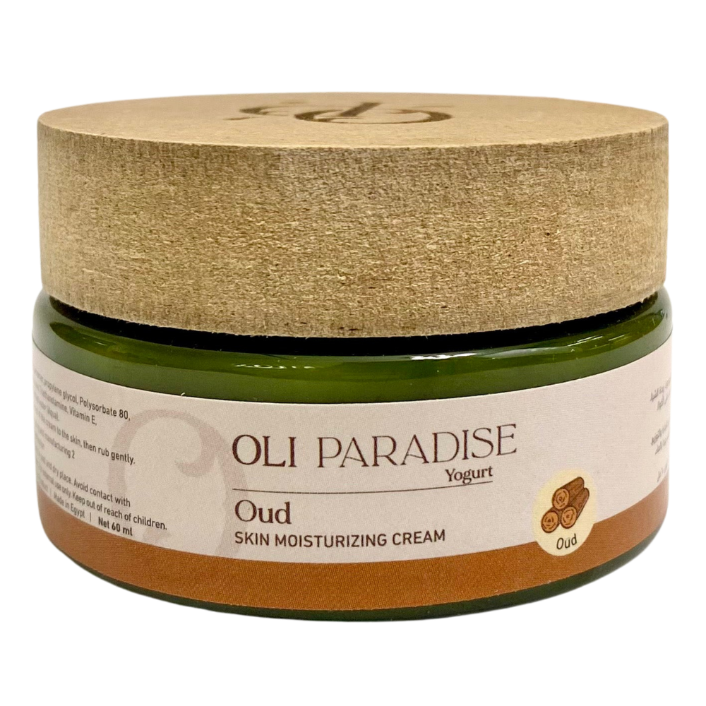 كريم زبادي صغير الحجم معطر برائحة العود يمنح البشرة نعومة وإشراقة مميزة.