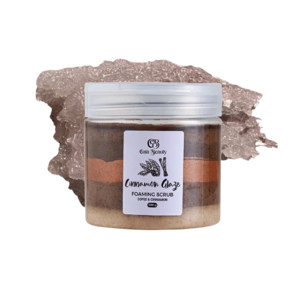 مقشر جسم فاخر 3 في 1 يبدأ كمقشر، ويتحول إلى منظف رغوي، وينتهي ككريم مغذي للجسم. مدعوم بالزيوت الطبيعية والمقشرات. متوفر بـ 7 روائح مميزة. مقشر الرغوة من جايا بيوتي هو علاج متعدد المهام للجسم 3 في 1 يرتقي بروتين الاستحمام الخاص بك. يبدأ كمقشر غني قائم على السكر، ويذوب ليتحول إلى منظف رغوي حريري، وينتهي كطبقة كريمية مرطبة - مثل لوشن تشطفينه. بتركيبة من مزيج من السكر البني وحبيبات المشمش، فإنه يزيل الجلد الميت مع تشجيع الدورة الدموية. بمجرد إضافة الماء، يتحول المقشر إلى رغوة لطيفة، وينظف بفعالية دون تجريد البشرة. أثناء الشطف، يتحول مرة أخرى - تاركًا لمسة نهائية ناعمة وكريمية تغذي وترطب بعمق، بفضل زبدة الشيا وزيت الأرغان والسكوالين وفيتامين هـ. كل نوع من الروائح غني بمكونات نباتية مستهدفة - غني بنفحات جريئة من العود والقهوة والقرفة، يتجاوز Cinnamon Glaze مجرد العطر. مزيج القهوة والقرفة يحفز الدورة الدموية ويساعد على تقليل ظهور السيلوليت وعلامات التمدد بمرور الوقت. تعمل القهوة كعامل شد طبيعي، بينما تعزز القرفة تدفق الدم وإنتاج الكولاجين. الأفضل للبشرة التي تحتاج إلى تحسين اللون والملمس والتنعيم المرئي.
