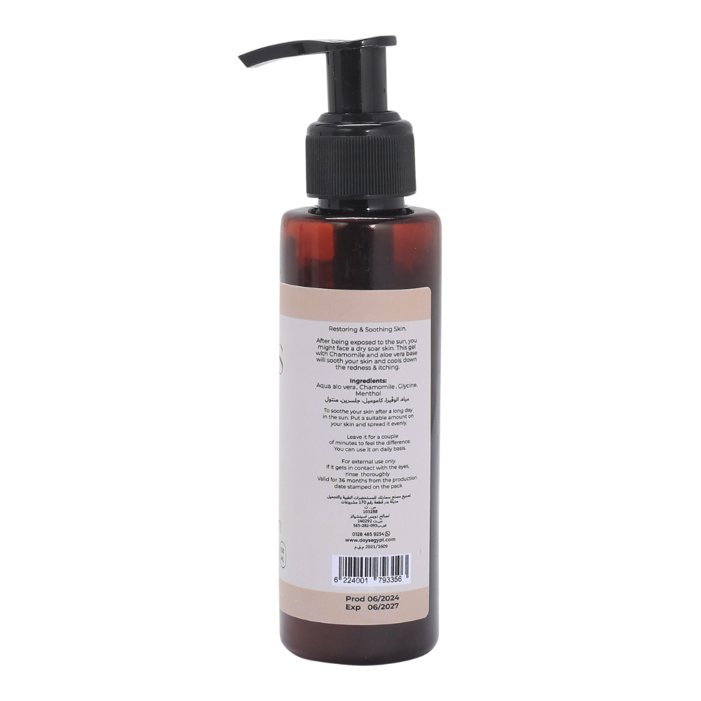 ”- يهدئ الاحمرار ويخفف من الحكة مع هذا الجل اللطيف المصمم لإنعاش البشرة وتهدئتها بعد التعرض لأشعة الشمس.