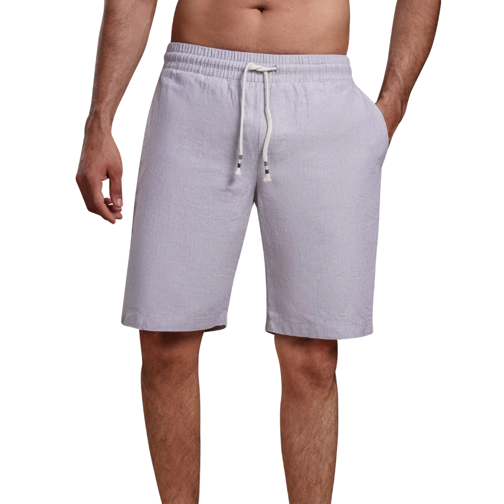 شورت كتان قطني مغسول من روبان يجمع بين الراحة والتهوية المثالية لإطلالة كاجوال عملية. متوفر بالمقاسات M - L - XL - XXL - 3XL وبألوان الرمادي الفاتح - البيج.
