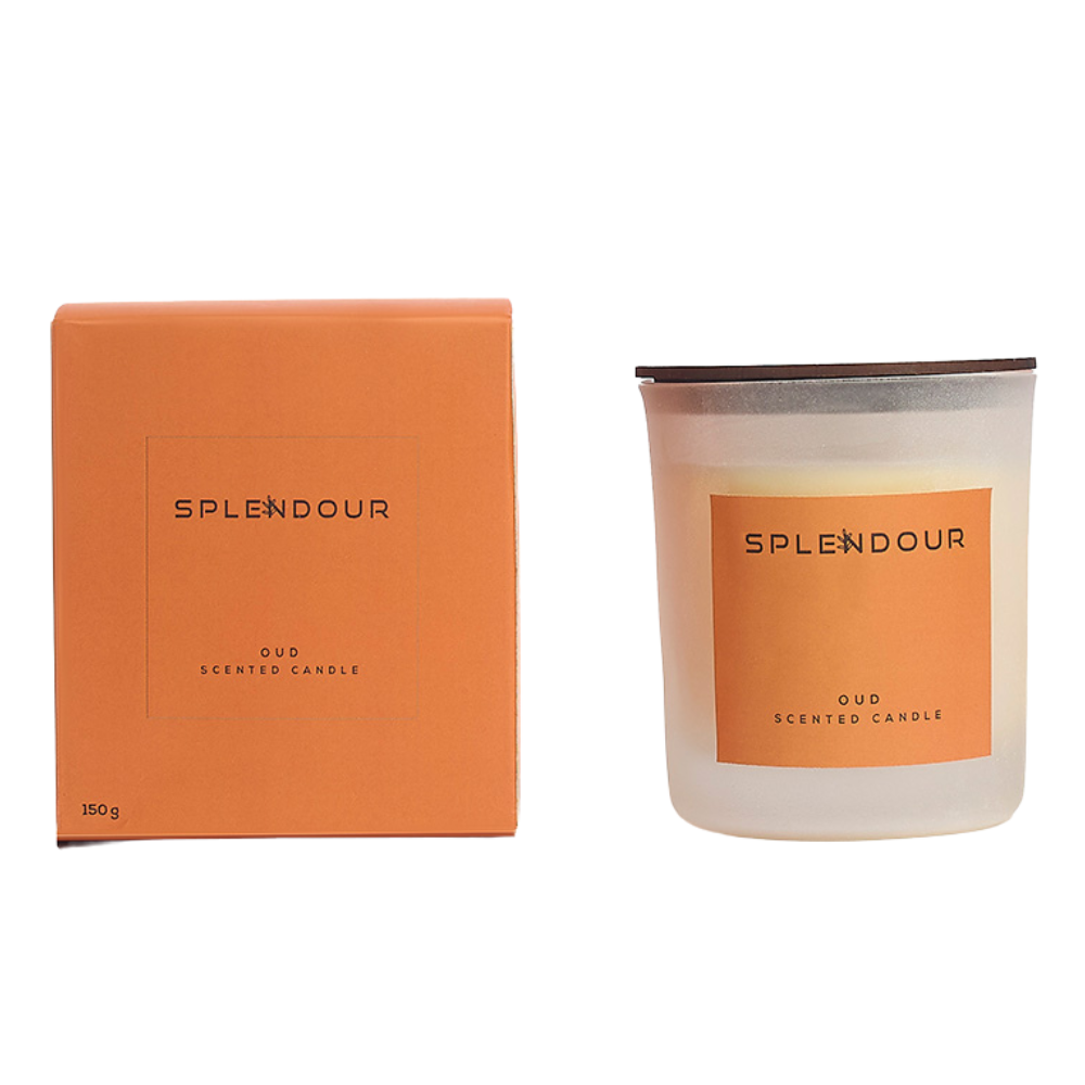 شمعة معطرة من Splendour برائحة العود الشرقية العميقة، تمنح إحساسًا بالفخامة والتميز، وتخلق أجواء دافئة ومريحة في أي مساحة.