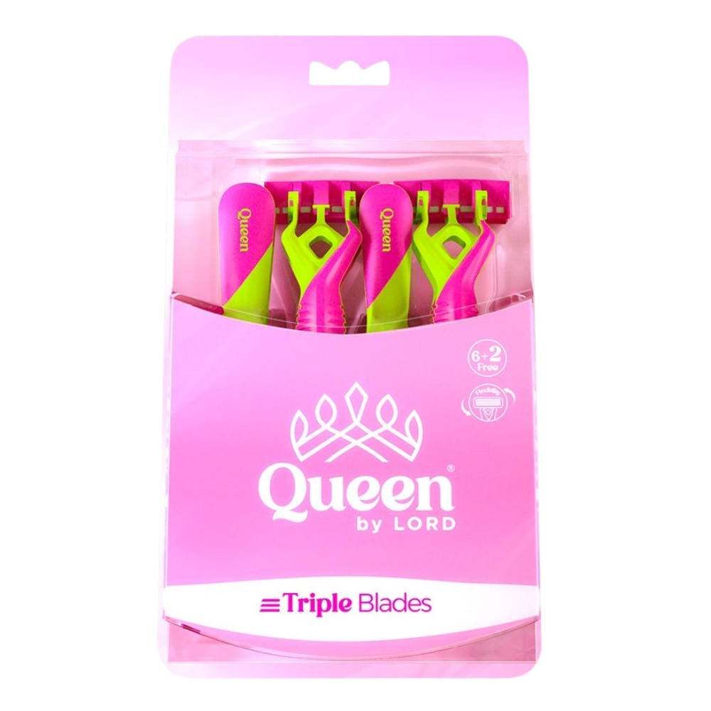كوين باي لورد ماكينات حلاقة ثلاثية الشفرات للنساء، 6+2 مجانًا - العبوة الفاخرة (وردي)