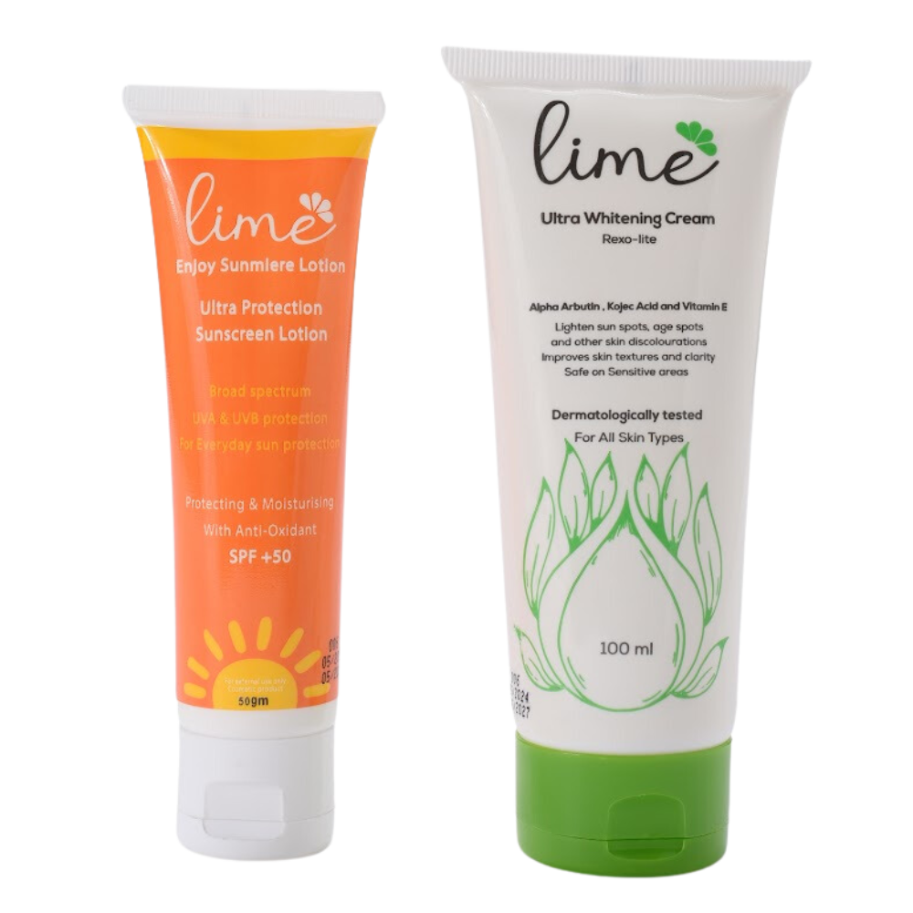 تتضمن مجموعة الروتين اليومي المثالية ما يلي: لوشن واقي من الشمس بعامل حماية من الشمس SPF50 50 مل كريم تبييض فائق 100 مل
