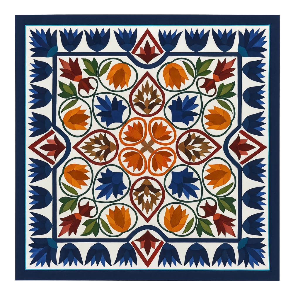 لوحة خيامية مصرية مصنوعة يدويًا تتميز بنقوش هندسية وزخارف نباتية تقليدية بألوان غنية من الأزرق والأخضر والبني والأحمر. تجمع بين الدقة في الخياطة والأصالة المصرية العريقة، وتضفي لمسة فنية تراثية على أي مساحة داخلية.