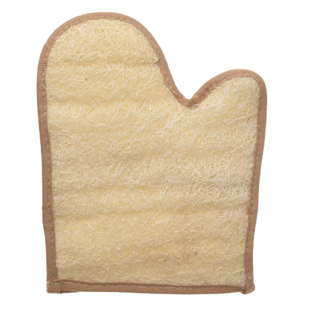 قفاز لوفة مزوّد بطرف إصبع بارز لتقشير دقيق حول جوانب الأنف والكاحلين وخلف الأذنين.